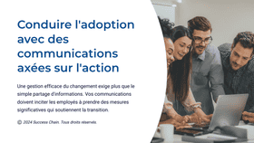Maîtrisez des stratégies de communication rapides et évolutives pour stimuler le changement organisationnel, instaurer la confiance et favoriser efficacement l'adoption par les utilisateurs !